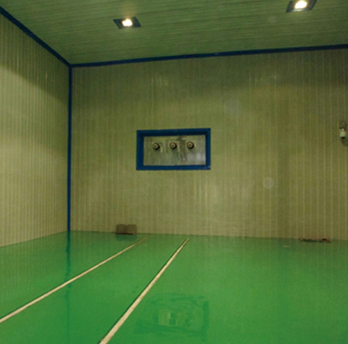 1.此處以鋼板焊接式電磁屏蔽室為例。包括六面龍骨框架、冷軋鋼板。龍骨框架由槽鋼、方管焊接而成,材料規(guī)格按屏蔽室大小確定地面龍骨(地梁)應與地面進行相對緣處理。墻、頂部冷軋鋼板厚度2mm,底部鋼板厚3mm,先在車間預制成模塊,分別焊接在龍骨框架內側。所有焊接均采用CO2保護焊,連續(xù)滿焊,并用專用設備撿漏,防止漏波。所有鋼質殼體必須進行良好的防銹處理;